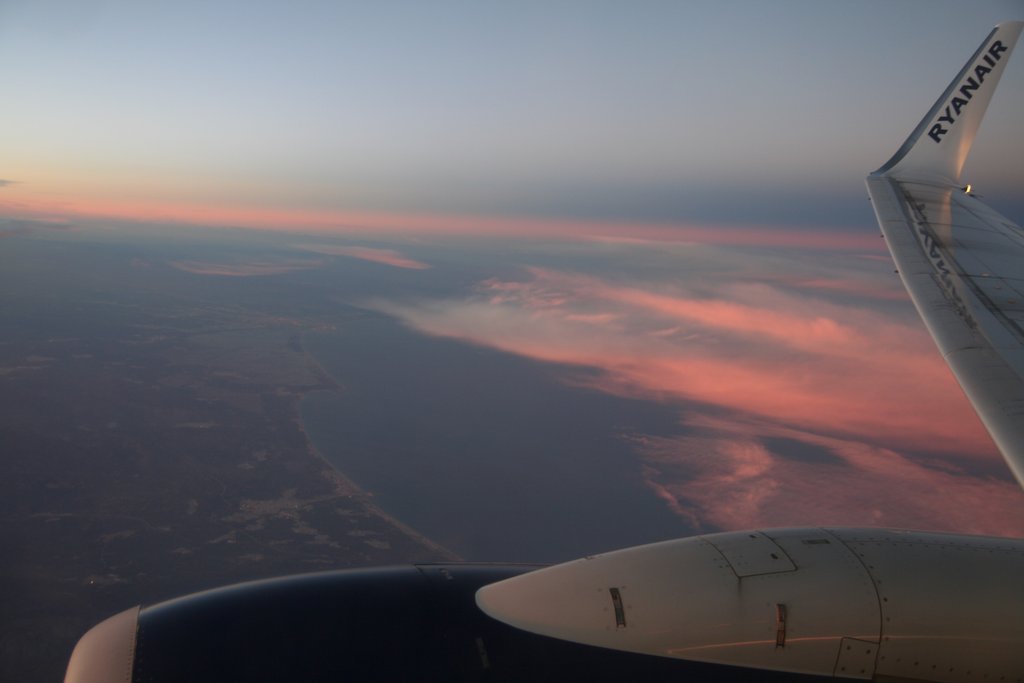 Wylot z Frankfurt - Hahn, zimowa nadrenia z lotu samolotu.