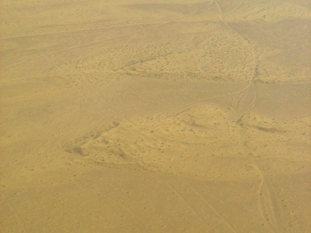 Odlot. Modlitwa z głośników. Przylot. Syria była cywilizowana z powietrza, Emiraty - to pustynia, poprzecinana autostradami, czasami ślady czlowieka: masteczko, jakiś pałac, zasypana piaskiem stara droga. Przesiadka, nic ciekawego, kolejne godziny oczekiwań, odlatujemy już po ciemku. Samolot wypełniony tym razem ciemnymi, uśmiechniętymi twarzami. Pilot zaopwiada aktualną pogodę u celu: podobno ulewa. Przy obecnej spiekocie brzmi to abstrakcyjnie. W czasie lotu próbuję zakupić szklankę whiskey, ale nie bardzo moge się dogadać z obsługą, więc całą drogę rozczytuję podręcznik Pascala i wypisuję miejsca, które chciałbym odwiedzić.